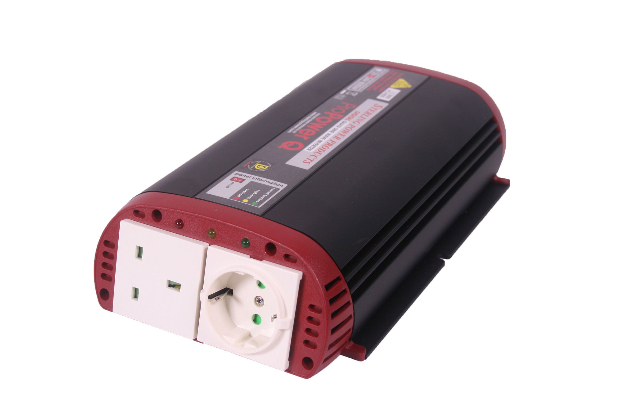 All Sterling inverters are continuously rated, with all the usual overload, over voltage and low voltage cut outs, all the inverters come with cable and 24 kt gold connectors, in order to prevent battery terminal corrosion. Available in 230V for UK and Europe and also 110V for building sites / off vehicle use or for equipment supplied on boats made in the USA (not suitable for washing machine / some bread makers). Thermostatically controlled fans Overload, overheat, short circuit protected Standby-current: Efficiency: 85%-95% Incl. battery cable (1m length) Socket Type: British / Euro Voltage DC: 12 Power (continuous) Watts: 800 Size L x W x D mm: 270 x 150 x 65 Weight Kg: 1.8 For cable information for all Sterling Products click here