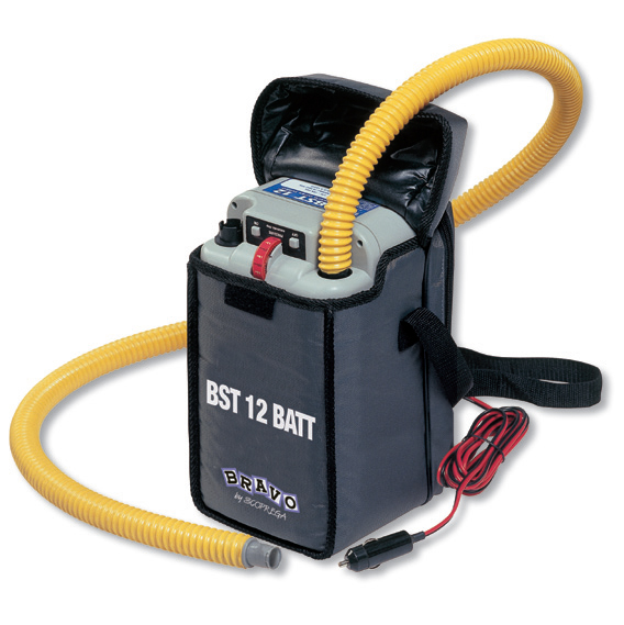 This high speed, high pressure electric inflator has an adjustable pressure of up to 800 mbar (11.6 psi). When the pressure is reached, the pump stops automatically. Can be used for inflating or deflating, it comes equipped with connectors & carry bag. Suitable for boats with inflatable floors. It is equipped with a rechargeable 7 Ah battery, which when fully charged allows approx. 15 minutes of independent operation. It is supplied in a fabric carry-bag and includes a recharging cable for cigarettelighters. The wall charger is available as an option. Piston flow rate: 150 l/min Turbine flow rate: 450 l/min Max pressure: 800 mbar (11.6 psi) Consumption: 20 A max