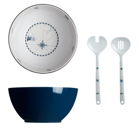 The Columbus salad bowl, made of melamine, includes two practical servers that match the salad bowl design. It is a highly shockproof, large bowl that remains stable due to its weight. It has been designed to serve salads or pasta on board. The Columbus nautical collection has many other nautical accessories to match. Suitable for dishwashers Ø 25 cm