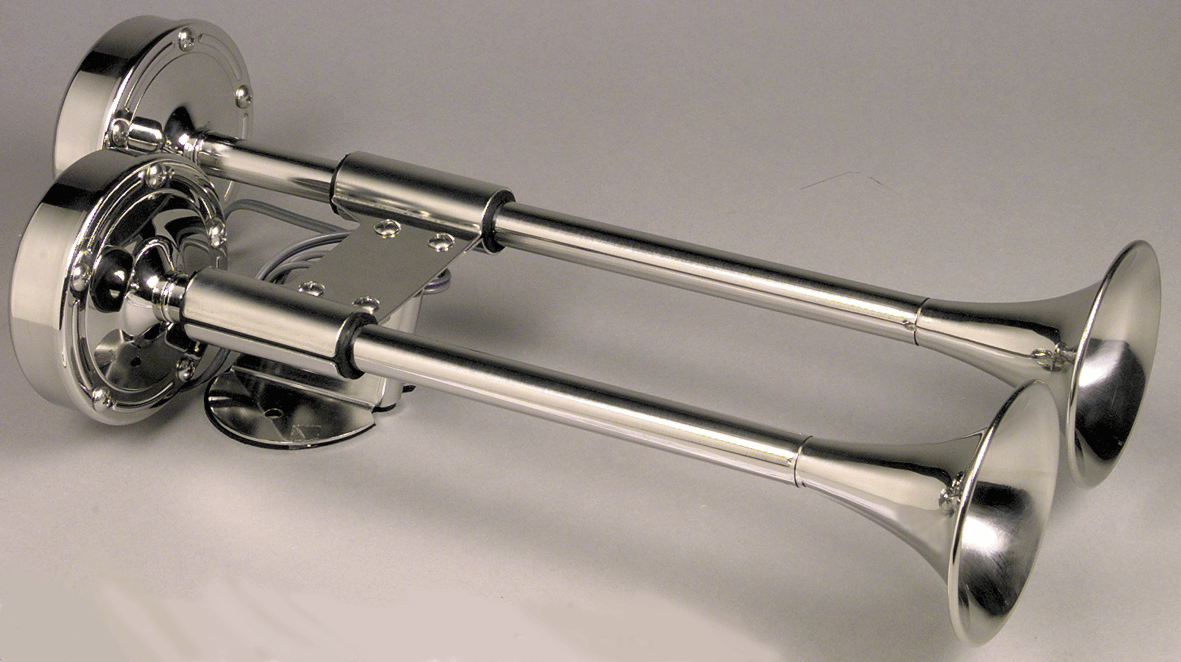 Single and Dual “Waterproof” Trumpet Horns available 12 or 24 volt Standard Line features stainless exterior Deluxe Line features stainless exterior No Rust Guarantee for five years (Stainless Steel Components Only) ABYC-A-23 Pre-wired for easy installation Weather resistant units
