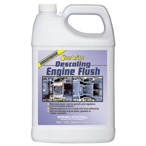 Description Star brite® Descaling Engine Flush is designed to safely and quickly remove scale, calcium deposits, corrosion, salt and carbon buildup in your engine’s cooling and wet exhaust systems. These deposits can make your engine run hot by restricting water flow through the cooling jackets. Calcium buildup also may damage your engine’s water pump. Descaling Engine Flush WILL NOT damage seals, gaskets or rubber impellers. Features