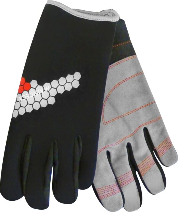 Performance grip Quick dry amara palm Ultra grip stitching Ergonomically shaped wrist strap Pull tab Hook & loop fastening Ultimate warmth (Neoprene) 2.5mm neoprene cuff