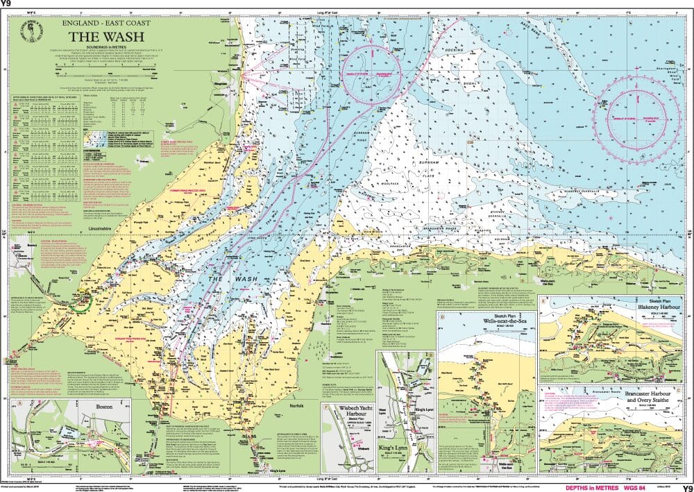 Navigate The Wash with confidence using Imray Chart Y9. Order now to secure this essential navigation chart and ensure a safe and enjoyable boating experience in this unique maritime region.