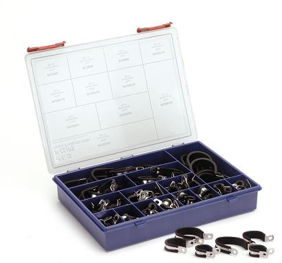 This assorted box of stainless steel P-Clips is ideal for workshops and field engineers.104 assorted P-Clips included ranging from 5mm to 35mm closed diameter.JCS P-Clips are used in many industries for fixing pipes, hoses, cables and groups of cables.Their Ozone and U.V resistant TPE rubber liners enable them to clamp the pipes or cables firmly without any possibility of chafing or damaging the surface of the item being clamped.Manufactured from 18/8 (BS304) marine grade stainless steel.Operating temperature -30 to +50 degrees celcius.