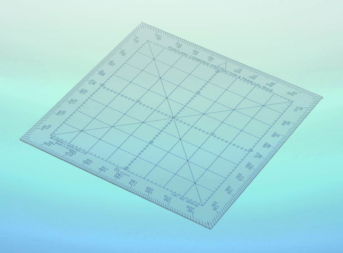 Douglas-type square pattern navigational protractor Can also be used as a simple parallel rule and plotter Also available in 250mm/10″