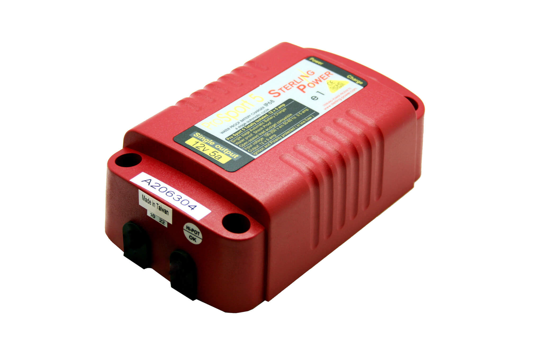 Pro Sport 5 is 1 x 12V / 5A output. Pro Sport 5/5 is 2 x 12V / 5A totally isolated outputs, can be used as: 1 x 12V / 10A, 2 x 12V / 5A, or 1 x 24V / 5A. Epoxy filled for waterproof and vibration proof aspects. Pre-wired with 1.5 meters DC+ and DC- cables. DC cables pre-fused and comes with gold plated terminals. Pro Sport 5 and 5/5 waterproof battery charger 230V AC 50HZ only