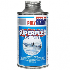 Polymarine have formulated a specialist PVC paint called Superflex for the renovation of inflatable boats made from PVC and any other PVC variant material. Superflex adheres in a super strong flexible bond, becoming part of the surface withstanding weathering, abrasions and retaining colours and bright whites for many years. It has a super high stretch ratio that will not crack or flake off. Superflex’s coating properties are highly opaque, easy to apply and quick drying. Application is one coat for good surface adhesion and a second coat for a smooth satin appearance and improved, lasting durability to UV and the elements. The Unique Properties of Superflex Paint *A fully flexible paint formulated for renovating PVC and any other PVC variant fabric. *Bonds into the PVC surface for a super tough and flexible finish. *Smooth satin finish, will not crack or flake off. *No mixing required, just a vigorous shake. *Seawater and UV sunlight resistant. *Many uses including hatch covers, PVC fenders, boat covers, spray dodgers etc. *Supplied in 500ml containers. *1 x 500ml Tin is enough to apply two coats of paint on 2 to 3 square metres. *‘Touch-Dry’ in 15 minutes at 20°C. *Second Coat can be applied when ‘Firm-Dry’ after a minimum 1 hour. *‘Hard-Dry’ is achieved after 24 hours or a minimum of 8 hours at 20°C. APPLICATIONShake the Paint Tin vigorously prior to application. Add the approximate amount of paint you intend to use in one session to a paint kettle or similar container. Stir the container of paint every few minutes. BY BRUSH (recommended) It is recommended that Superflex be applied using a good Brush with Natural Bristles. Synthetic Bristles may dissolve due to the solvents present within Superflex. ROLLERS (not recommended)Use of Gloss Paint Rollers is not recommended as they’re usually synthetic and prone to breaking down due to solvents, thus spoiling your final finish. SPRAY PAINTING – Professional use only with appropriate breathing apparatusSpraying can be done using the Polymarine Superflex 2661 Thinners, at a mix ratio of 1 Base to a maximum of 30% Thinners. Two spray coats should be applied as a minimum. Refer to SDS for cautionary and safety procedures.