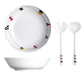 Made of melamine, the Regata salad bowl, like the other nautical items in the collection, has a colourful flag design that will give your table a casual elegance. The salad bowl includes two servers, also made from melamine. Melamine Non-Slip Salad Bowl Suitable for dishwashers Ø 23 cm