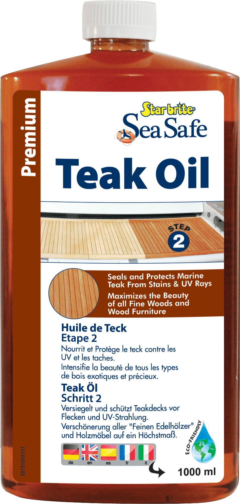 Enhances natural beauty and color of teak. Star brite Sea Safe Premium Teak Oil’s ultra-refined tung oil and polymer formula adds beauty to all fine woods. It resists staining and contains UV inhibitors to protect wood from weathering and turning gray.