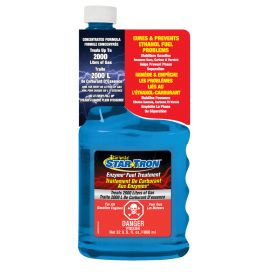 Description Star Tron Enzyme Fuel Treatment is a multifunctional fuel additive which uses a unique enzyme technology that allows all engines to start easily and run smoothly, even when using ethanol-blended fuel or after sitting idle for months. Star Tron® eliminates and prevents ethanol fuel problems. Star Tron breaks down excess water and sludge to sub-micron size, allowing it to be safely burned away during normal engine operation which helps prevent phase separation. Star Tron® increases fuel economy by cleaning the entire fuel delivery system, removing performance robbing gum and varnish deposits while modifying how fuel burns. This results in more complete and uniform combustion, maximum performance, increased fuel efficiency, reduced emissions and reliable operation. Star Tron will stabilize fuel for up to two years, preventing the formation of gums and other solids that clog carburetors and fuel injectors. Star Tron can help rejuvenate old and sub-spec fuel. Star Tron can be used in all gas outboards, inboards, cars, trucks, motorcycles, ATVS, snowmobiles, small engines, outdoor power equipment including pre-mix fuel engines. Star Tron is safe for all engines and overdosing is not harmful. Available in three convenient concentrations. • 143XX Small Engine Formula – Each oz. treats up to 6 gallons of fuel. • 930XX Concentrate Formula- Each oz. treats up to 16 gallons of fuel. • 14501 Super Concentrate 1 oz. Single Dose Shooter treats up to 25 gallons of fuel. Features