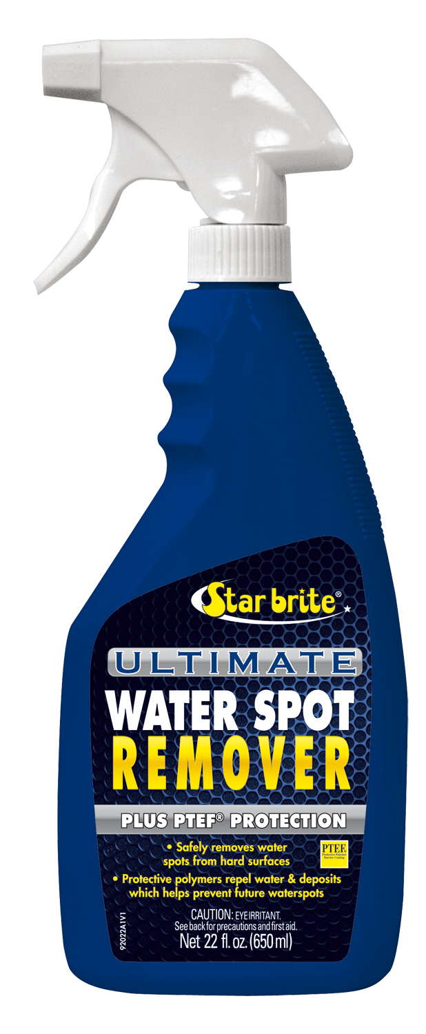 Description Star brite Ultimate Water Spot Remover is the easiest yet most effective way to remove water spots. The non-abrasive formula dissolves the deposits that cause waterspots, allowing them to be easily wiped away. The special PTEF® polymers provide a barrier to future deposits and also add a deep shine to treated surfaces. Ideal for use on motorcycles, ATVs, helmets, windshields, PWC, boats, cars and trucks. Features